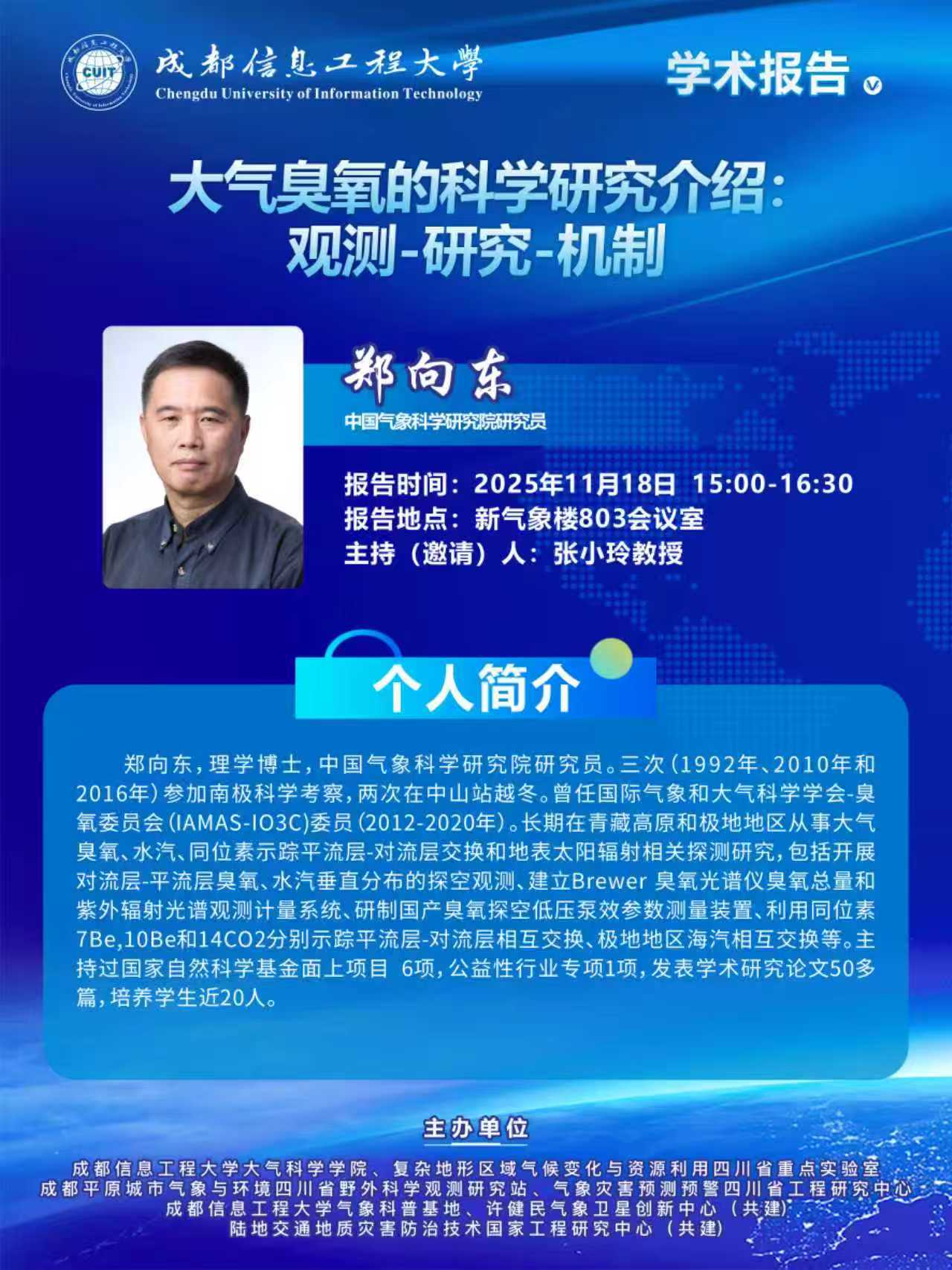 【学术报告预告】大气臭氧的科学研究介绍:观测-研究-机制