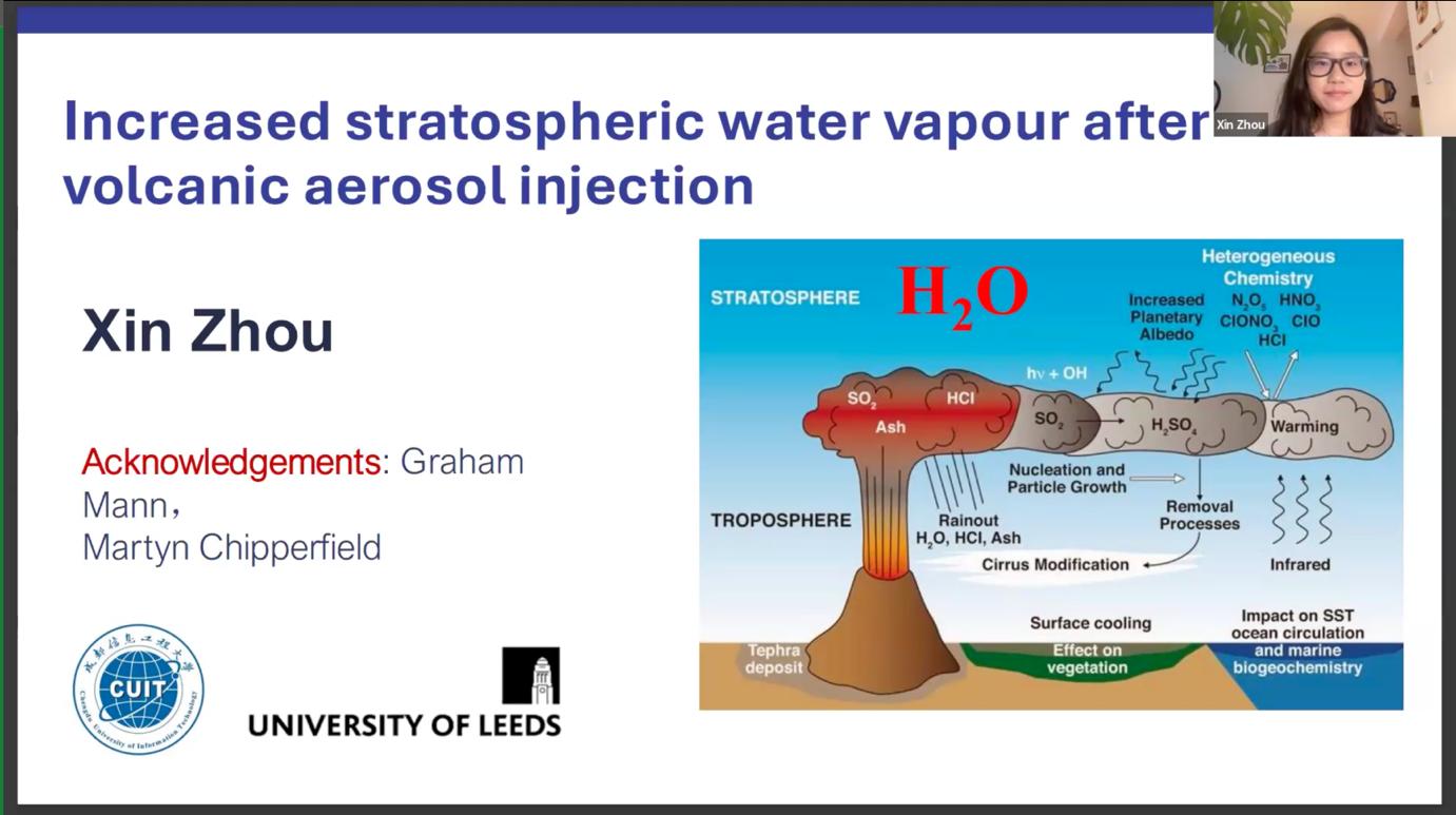近日,成都信息工程大学大气科学学院教师周欣副教授应邀参加了“Stratospheric Aerosol Injection (SAI) Workshop”,并作题为《Increased stratospheric water vapour after volcanic aerosol injection》的学术报告。