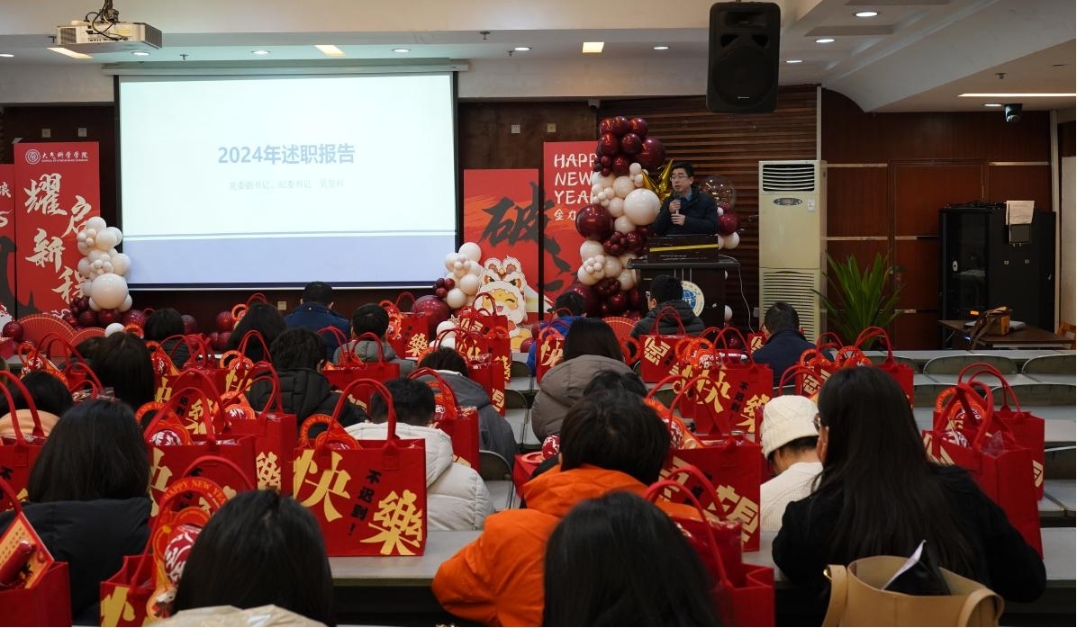 学院党委副书记、纪委书记吴登科就2024年度学生党建和思想政治工作、纪委工作及学生管理工作进行述职。他表示,在新的一年里要坚持党建引领,持续推进学生党支部标准化规范化建设,进一步加强学生日常教育管理,狠抓学风建设,全面推动学生发展。