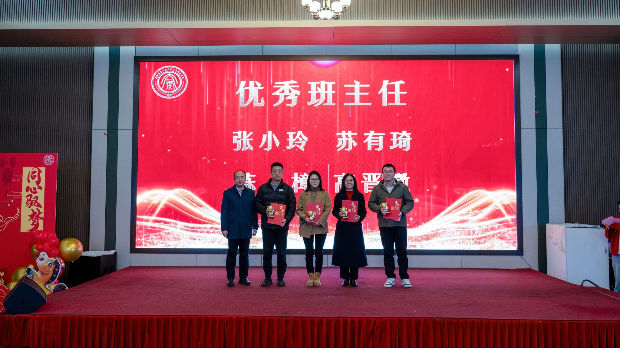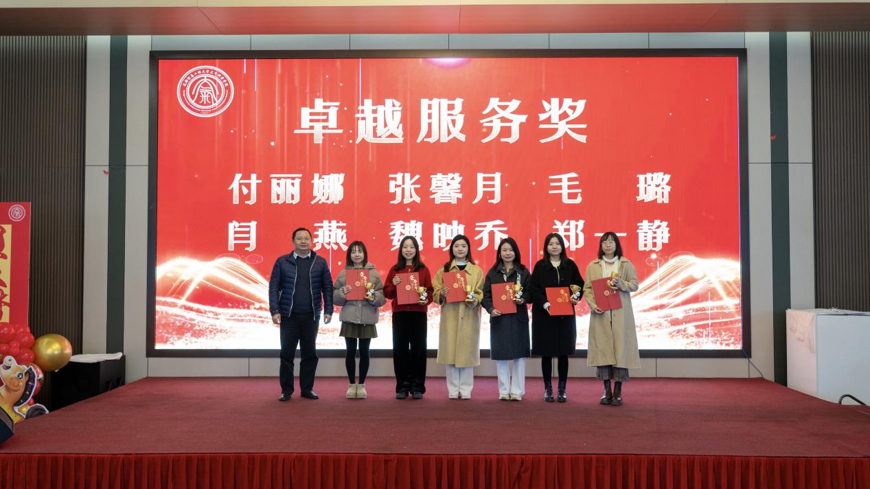 述职环节结束后,学院举行了2025年度表彰仪式。学院领导班子为荣获年度“突出贡献奖”“科普标兵”“科技标兵”“教学标兵”“卓越服务奖”“优秀班主任”等荣誉的教职工颁发荣誉证书,以表彰先进、树立榜样,激励全体教职工以更加饱满的热情投身学院发展。