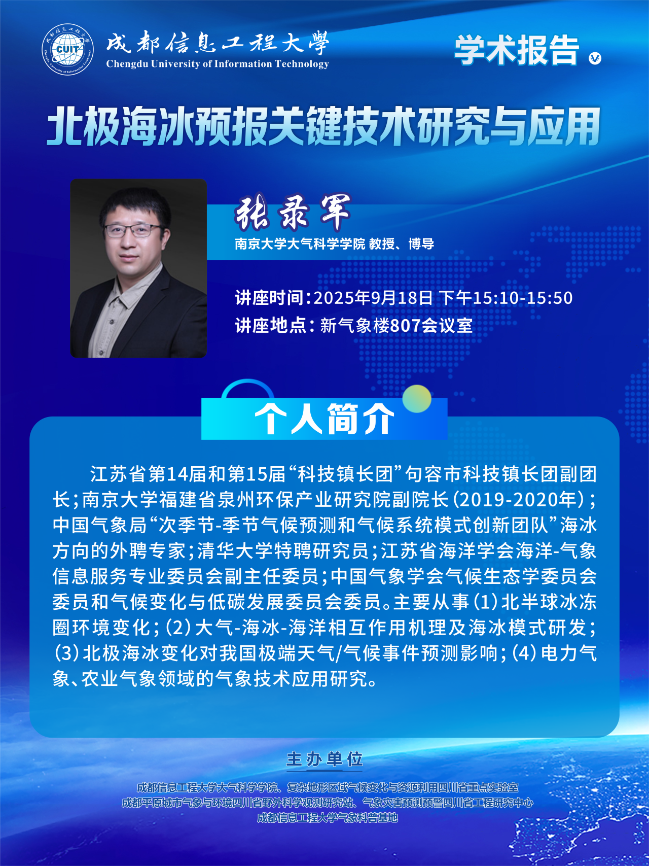 【学术讲座预告】北极海冰预报关键技术研究与应用