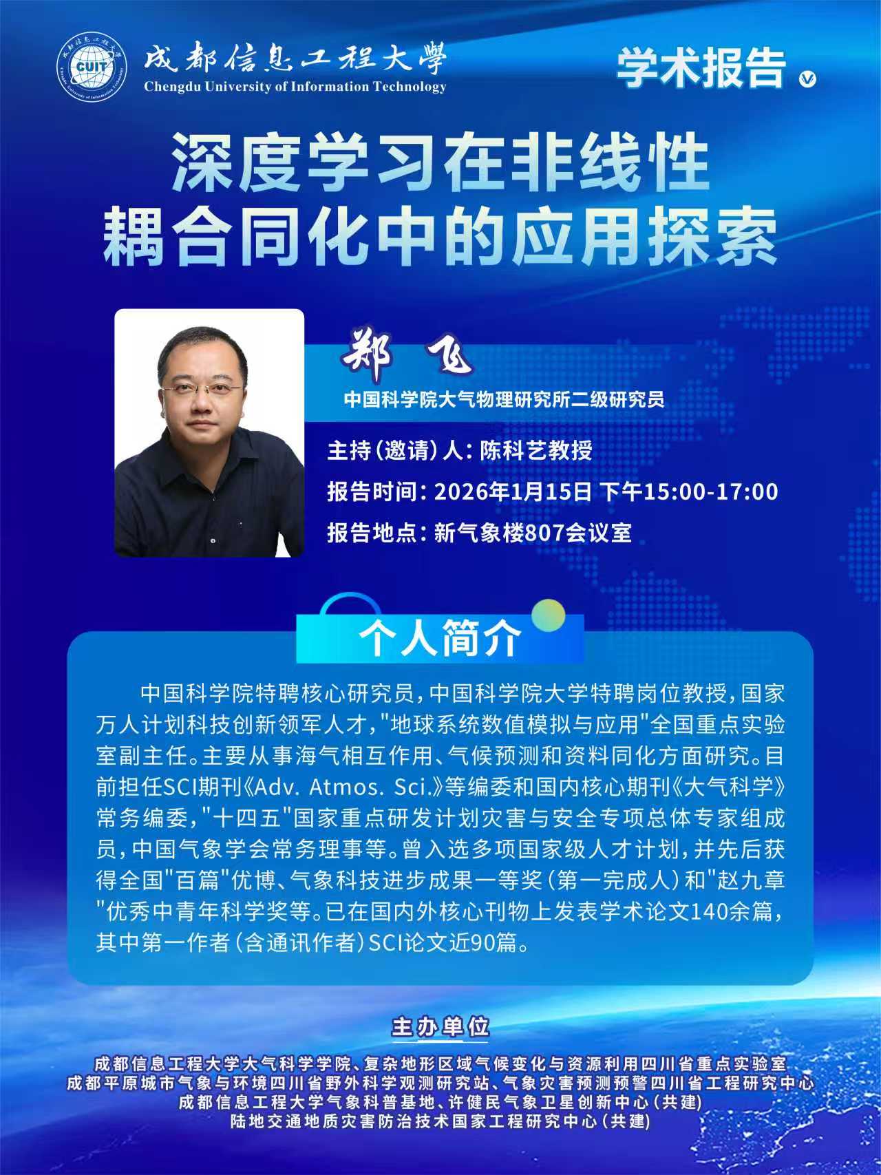 【学术讲座预告】深度学习在非线性耦合同化中的应用探索