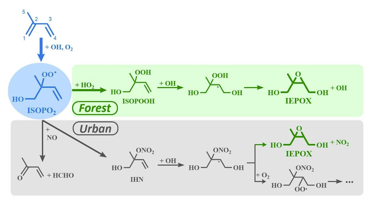 1. 异戊二烯在森林和城市地区通过不同的大气氧化过程形成IEPOX