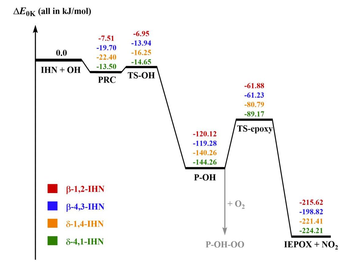 2. 异戊二烯有机硝酸酯与OH自由基反应形成IEPOX的化学反应势能面